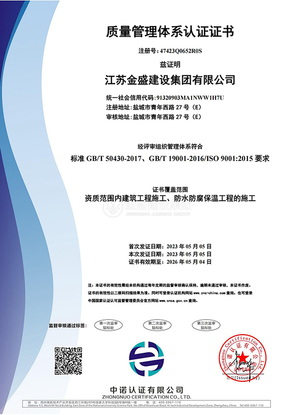 質(zhì)量管理體系認(rèn)證證書